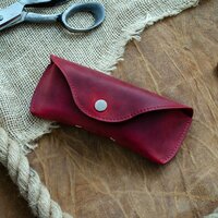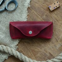 Плотная телячья держит форму и защищает очки от внешних воздействий. Помещаются очки любого дизайна кроме спортивных. Закрывается на кнопку. Внутри есть небольшой язычок для более надежной фиксации очков. Этот очечник будет солидно смотреться в качестве вашего аксессуара. И заметим, что такие футляры для очков являются очень хорошим подарком на любой случай жизни!