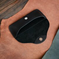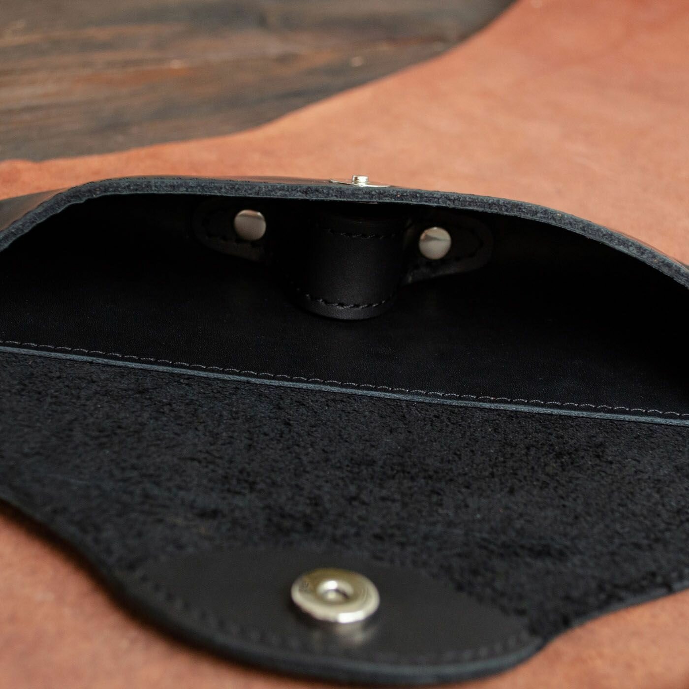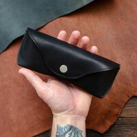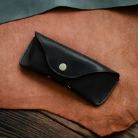 Плотная телячья держит форму и защищает очки от внешних воздействий. Помещаются очки любого дизайна кроме спортивных. Закрывается на кнопку. Внутри есть небольшой язычок для более надежной фиксации очков. Этот очечник будет солидно смотреться в качестве вашего аксессуара. И заметим, что такие футляры для очков являются очень хорошим подарком на любой случай жизни!