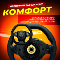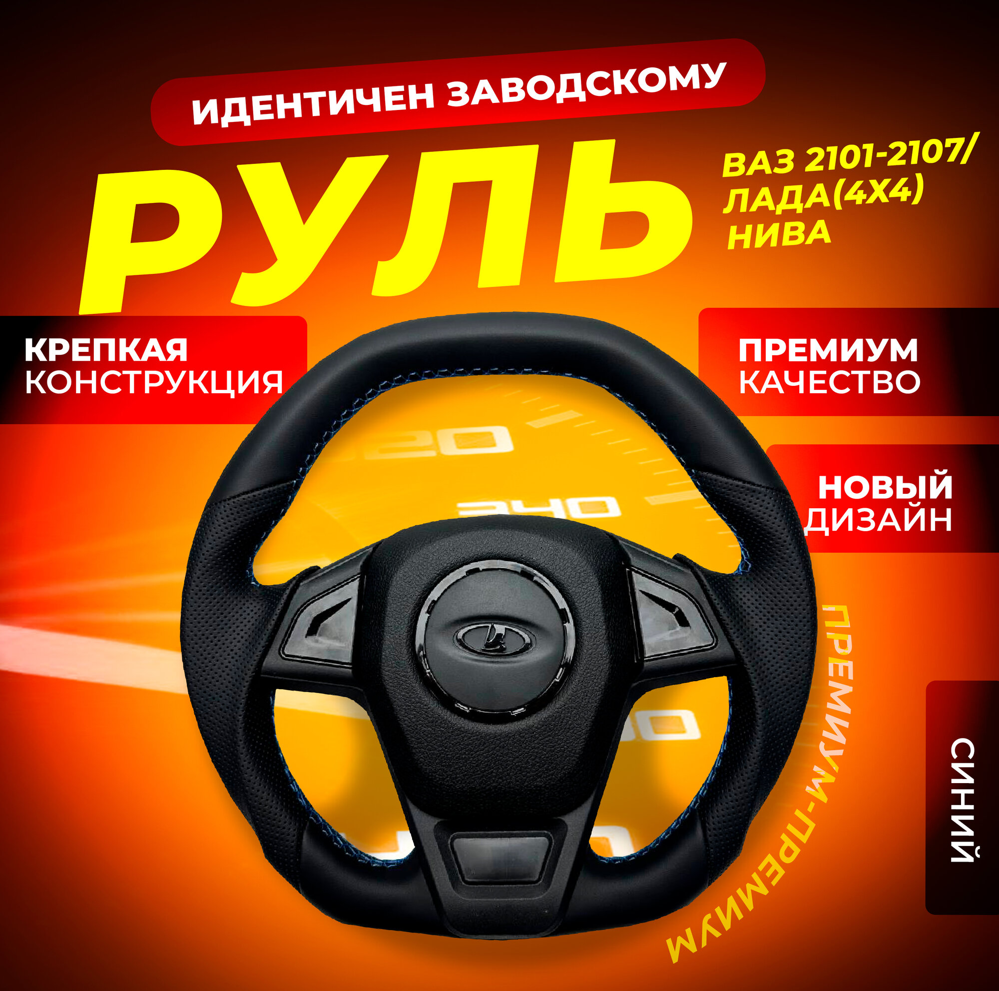 Данный руль обновит внешний вид салона Вашего авто и отлично подойдёт для замены старого штатного руля. При разработке дизайна за основу было взято рулевое колесо LADA NIVA. Удобный хват для рук, по сравнению со стандартными рулями установленными заводом изготовителем. Диаметр руля 380 мм. Толщина обода - 36x31 мм, вынос стандартный. Данный руль, вы можете установить самостоятельно, без каких либо доработок. Руль изготовлен по всем заводским нормативам на производстве полного цикла, с учетом допустимого сопротивления и усилия, которые способна выдержать конструкция. Он позволит "осовременить" интерьер авто, так как похожий руль используется в автомобилях Лада Приора. При этом в нижней части имеется небольшой "скос", который поможет водителю при активном вождении, а также, это дает больший простор, при посадке водителя в автомобиль. В центре руля предусмотрено место для установки заводского знака LADA, который идет в комплекте. Применяемость: ВАЗ 2101 ВАЗ 2102 ВАЗ 2103 ВАЗ 2104 ВАЗ 2105 ВАЗ 2106 ВАЗ 2107 Нива