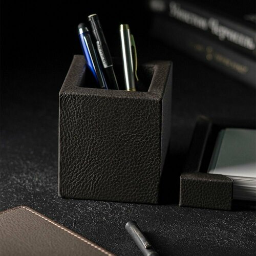 Купить Кожаный стаканчик для ручек и кистей из натуральной кожи с деревянной основой, Birch Choc с доставкой по всей России.
