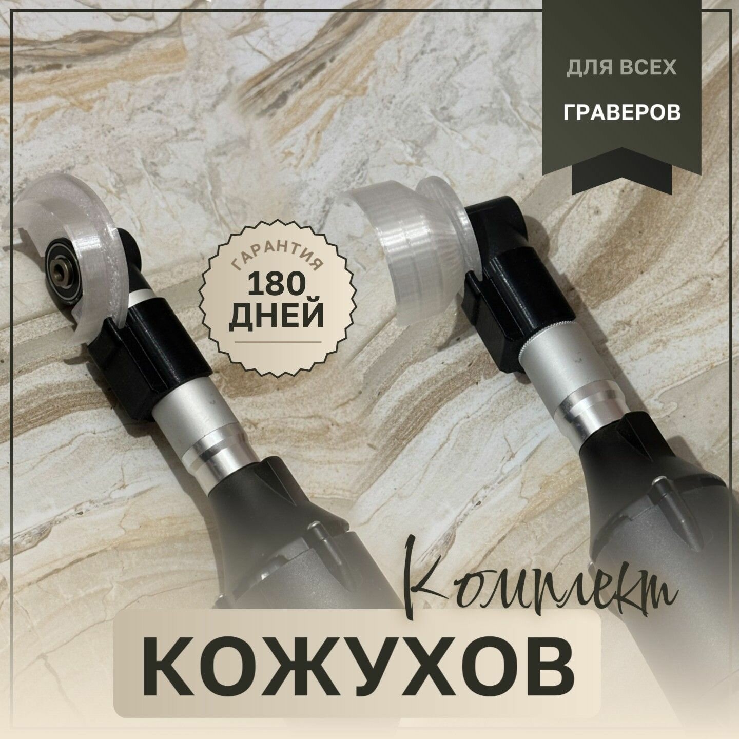В комплекте поставляются два прозрачных кожуха для гравера, что позволяет иметь запасной аксессуар на случай непредвиденных ситуаций или износа основного кожуха.
