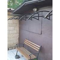 Каркас козырька из металла обеспечивает прочность и устойчивость конструкции. Металлический каркас надежно фиксируется на стене и не подвержен деформации под воздействием ветра и влаги.