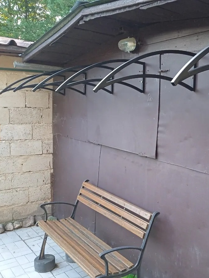 Козырек над дверью входной размещается над дверью крыльца дома, дачи, бани или другого строения и защищает ее от осадков. Кроме того, металлический каркас легко монтируется и долговечен, что делает его отличным выбором для использования на улице.