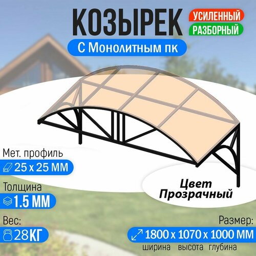 Козырек над крыльцом усиленный. Арочный 1,8 метра. Классик G-3 с Монолитным ПК Прозрачный: сравнение цен, характеристики, фото, актуальное наличие и цены.