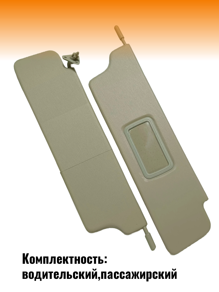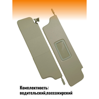 Особенностью данного комплекта является наличие зеркала на пассажирском козырьке и кармана для документов на водительском. Это позволит вам всегда иметь быстрый доступ к важным документам и зеркалу заднего вида.