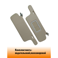 Комплектация включает в себя два козырька солнцезащитных для автомобиля.