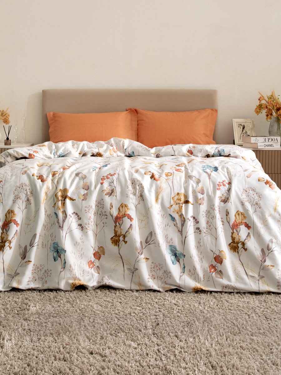 Комплект постельного белья евро Ventata от COZY HOME – завораживающий акцент вашей спальни. Благодаря особо плотному плетению полотна, которое называется сатин, ткань не теряет форму после стирок и длительного использования. Этот полностью натуральный и плотный материал комфортен для ежедневного использования, идеально впитывает влагу, пропускает воздух и обеспечивает дополнительную защиту от пуха и пера, находящихся внутри подушек и одеял. Требуется бережная стирка не выше 40 градусов. Характеристики • Ткань: Сатин • Состав: Хлопок 100% • Цвет: Оранжевый • Страна: Россия Размеры и комплектация • Пододеяльник: 215х220 • Простыня: 220х240 • Наволочка: 50х70 (2 шт.) • Упаковка: Пакет ПВХ Уход Использовать моющие средства для цветного белья. Перед первым использованием рекомендуется стирка. Стирать, вывернув изделие на изнаночную сторону. Рекомендуется стирать постельное бельё из хлопчатобумажных тканей отдельно от изделий из смешанных и синтетических тканей, а также отдельно от махровых изделий. Иногда это может привести к образованию катышек и ухудшению внешнего вида. Рекомендуемая температура воды при стирке 40° C. Постельное белье евро сатин нельзя отбеливать. Химчистка запрещена. Постельное белье евро хлопок гладить при температуре до 110° C. Щадящий отжим при сушке изделия. Подробная информация по уходу за изделием указана на упаковке.
