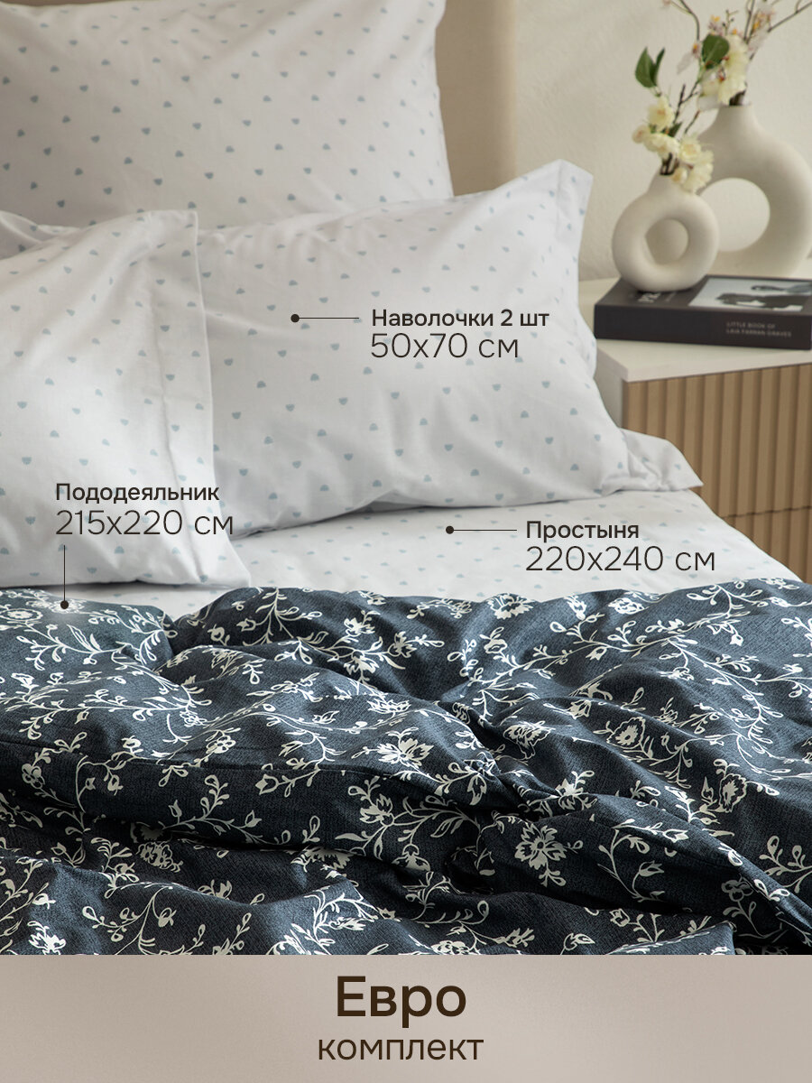 Комплект постельного белья евро от COZY HOME – завораживающий акцент вашей спальни. Благодаря особо плотному плетению полотна, которое называется Перкаль, ткань не теряет форму после стирок и длительного использования. Этот полностью натуральный и плотный материал комфортен для ежедневного использования, идеально впитывает влагу, пропускает воздух и обеспечивает дополнительную защиту от пуха и пера, находящихся внутри подушек и одеял. Требуется бережная стирка не выше 40 градусов. Характеристики• Ткань: Перкаль• Состав: Хлопок 100%• Цвет: разноцветный• Страна: Россия Размеры и комплектация• Пододеяльник: 215x220• Простыня: 220x240 стандартная• Наволочка: 50x70• Упаковка: Пакет ПВХ УходИспользовать моющие средства для цветного белья. Перед первым использованием рекомендуется стирка. Стирать, вывернув изделие на изнаночную сторону. Рекомендуется стирать постельное бельё из хлопчатобумажных тканей отдельно от изделий из смешанных и синтетических тканей, а также отдельно от махровых изделий. Иногда это может привести к образованию катышек и ухудшению внешнего вида. Рекомендуемая температура воды при стирке 40° C. Постельное белье Евро, Перкаль нельзя отбеливать. Химчистка запрещена. Постельное белье Евро хлопок гладить при температуре до 110° C. Щадящий отжим при сушке изделия. Подробная информация по уходу за изделием указана на упаковке.