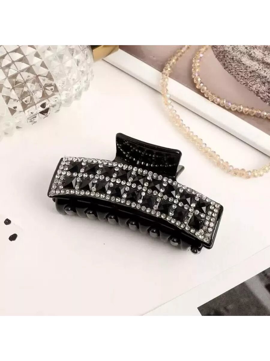 Краб для волос "Томирис" квадратики выполнен в стильном черном цвете и украшен стразами, что придает ему изысканный вид. Изготовлен из качественного пластика, который обеспечивает долговечность и надежность аксессуара.