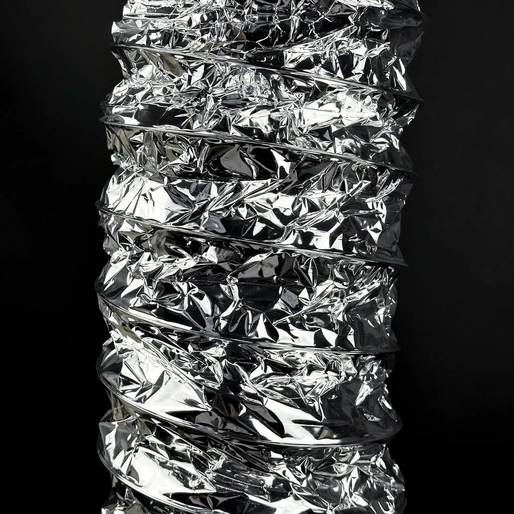 Неизолированные гибкие воздуховоды изготавливаются из металлизированной полимерной плёнки с витками высокопрочной стальной проволоки между слоями. Используется для приточной и вытяжной системы вентиляции для вытяжки. Просто соединяется с каналами круглого сечения и может закрепляться хомутами. Их эффективно используют в системах кондиционирования и вентиляции с низким и средним давлением. Главное преимущество – возможность повернуть канал практически под любым углом. Также они отличаются небольшим весом и простотой монтажа. Применяются для систем удаления газов, пыли опилок и др. Максимальная длина в растянутом виде – 10 м. В сжатом состоянии 40 см. Рабочая длина 9,5 м. Воздуховод гофрированный широко используется в вентиляции как жилых домов и квартир, так и промышленных сооружений и общественных пространств. Часто его можно встретить на кухнях, где гибкий воздуховод используется для соединения вытяжки с вентиляционной шахтой.