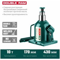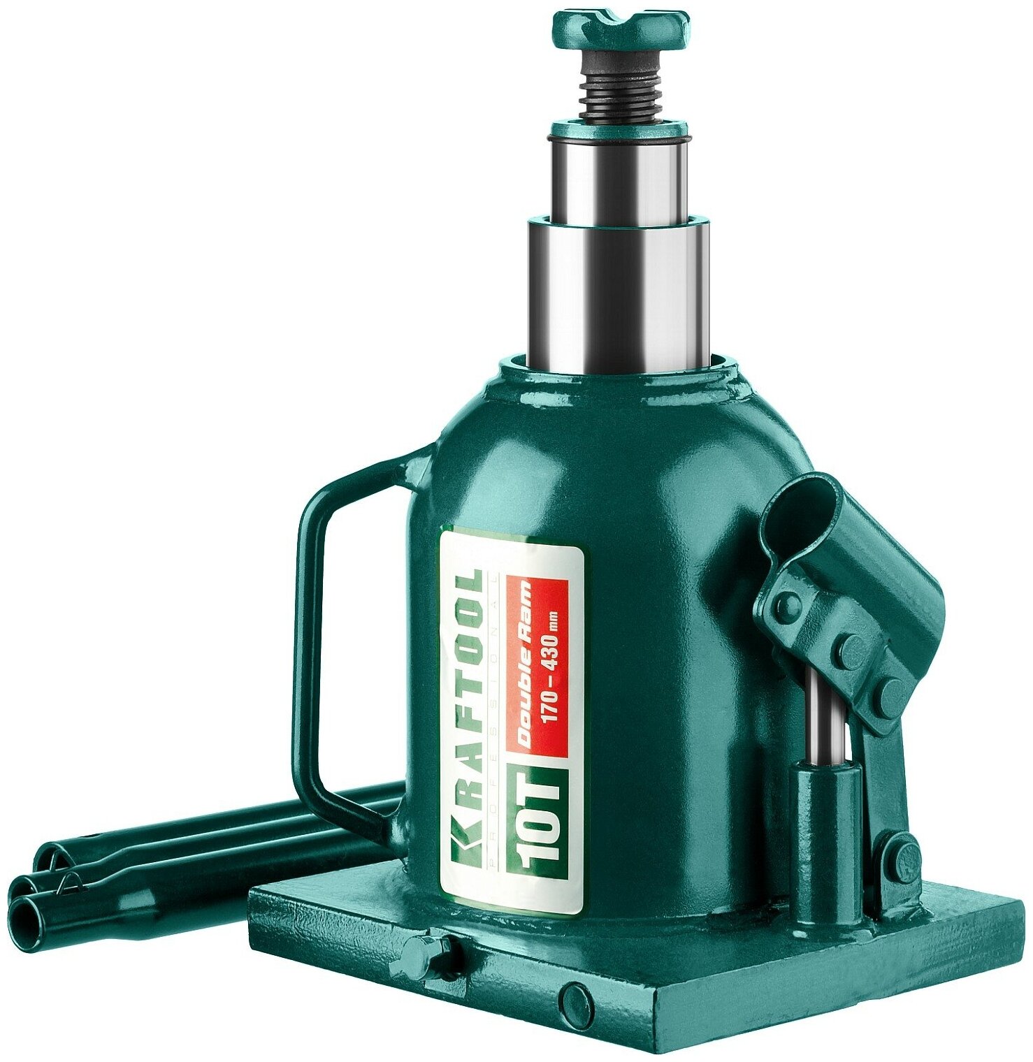 KRAFTOOL DOUBLE RAM, 10т, 170-430 мм, Двухштоковый бутылочный домкрат с увеличенным подъемом (43463-10): сравнение цен, характеристики, фото, актуальное наличие и цены.