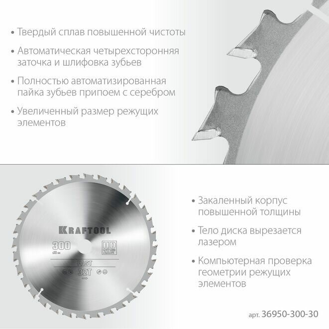 Диск пильный по дереву, KRAFTOOL Fast 300 х 30 мм 32Т: сравнение цен, характеристики, фото, актуальное наличие и цены.