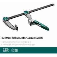- Рычажный механизм: быстрый, мощный зажим