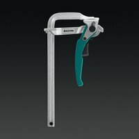 быстрозажимная, цельнокованная направляющая, храповый механизм, эксцентриковый зажим, работа одной рукой, кнопка быстрого сброса, плавающая полированная губка, устойчивость к вибрациям, профессиональное использование, для столярных и слесарных работ