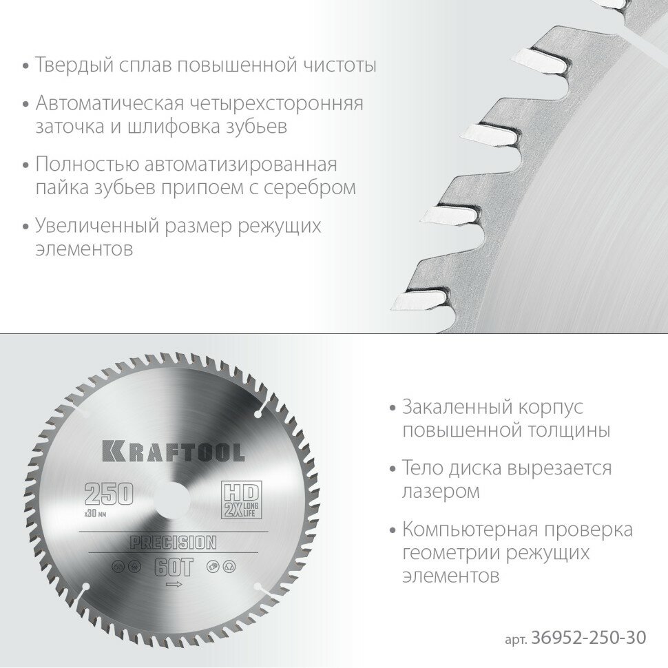 Диск пильный по дереву KRAFTOOL Precision, 250 х 30 мм, 60Т (36952-250-30): сравнение цен, характеристики, фото, актуальное наличие и цены.