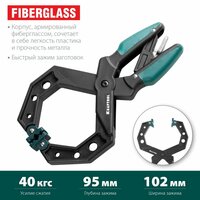 Технические характеристики струбцины KRAFTOOL: Форма губок С-образная Материал губок пластик Материал рукояток фиберглас Материал рамы фибергласс Рабочий ход 100 мм Длина 240 мм Усилие зажима 40 кг Вес нетто 0.29 кг