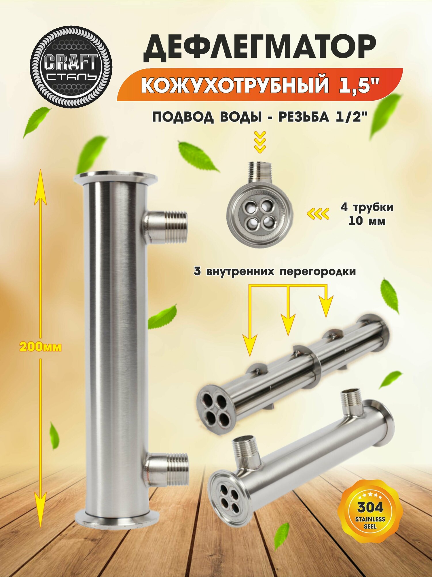 Купить Крафтсталь Дефлегматор кожухотрубный 1,5 дюйма подвод воды резьба 1/2 дюйма с доставкой по всей России. Крафтсталь Дефлегматор кожухотрубный 1,5 дюйма подвод воды резьба 1/2 дюйма: сравнение цен, характеристики, фото, актуальное наличие и цены.