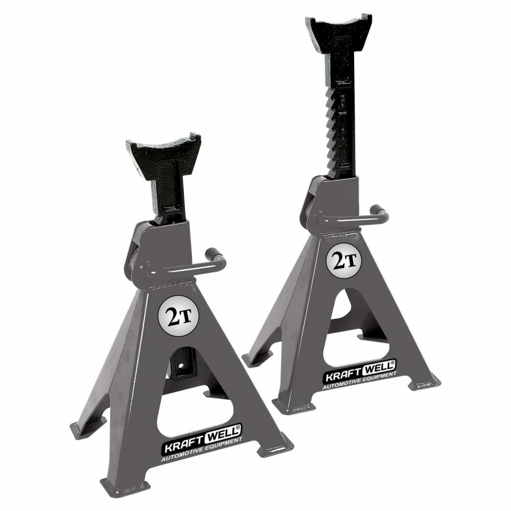 Стойки опорные KraftWell KRWJS2 для страховки поднятого на небольшую высоту автомобиля от падения. В комплект входит 2 стойки. Грузоподъемность каждой - 2 тонны.
