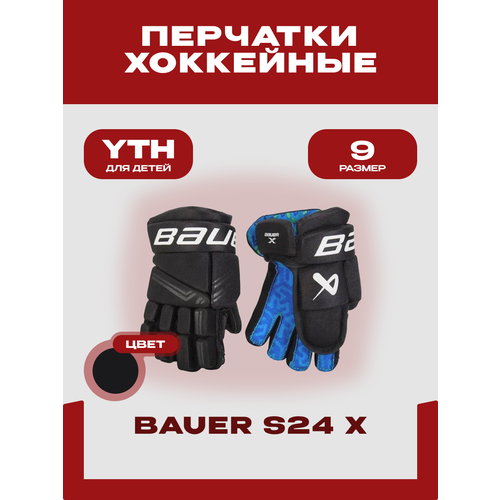 Краги хоккейные Bauer «S24 X GLOVE» YTH, для детей, размер 9, черные