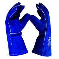 Arcticus 200520 - краги сварщика пятипалые с дополнительным усилением ладони и большого пальца. Изготовлены из бычьего спилка толщиной 1,4 мм класса А синего цвета, прошиты кевларовой нитью. Двойные швы. Длина 35 см. Подкладка: в кистевой части выполнена из флиса, в краге из хлопчатобумажной ткани. Сертификация: ТР ТС 019/2011; EN 420; EN 388 (3143); EN 407 (42314X)