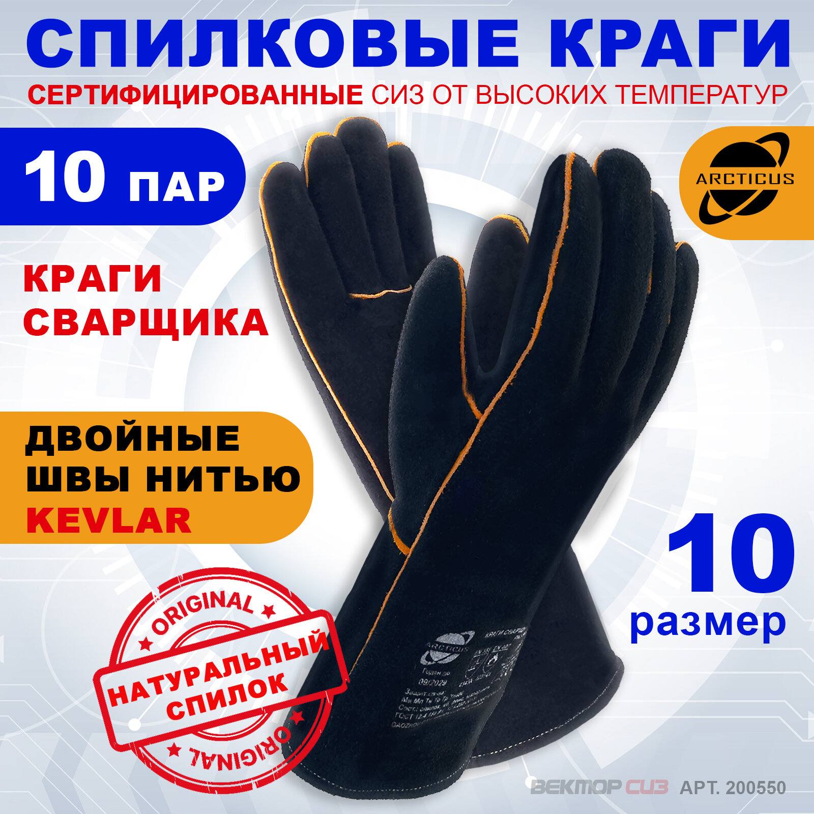 Выбирая краги сварщика ARCTICUS арт.200550, вы получаете надежное и удобное средство защиты рук, которое поможет вам сохранить здоровье и комфорт во время работы.