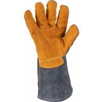 JWK502 Ferrus Comfort Перчатки сварщика (сварочные краги) Jeta Safety из спилковой кожи с подкладкой из хлопчатобумажной ткани и флиса Материал: спилок качество A+ (суперпремиум, толщина кожи: 1,3-1,5 мм) Подкладка: флис на ладонной части + хлопковый деним Шов: тройной кевларовый шов Длина: 350 мм Защитные свойства: Ми, Мп, Ти, Тр, То, Тп400, Тт. Защита от: контакта с нагретыми поверхностями температурой до 400 °С, искр и брызг расплавленного металла, открытого пламени, конвективной теплоты и теплового излучения, истирания, проколов, порезов Особенности: • Перчатки имеют абсорбирующую мягкую, дышащую, комфортную и теплоизолирующую подкладку; • Подкладка полностью прошита изнутри; • Изготовлены из аргентинской кожи, свободной от хрома (данный метод изготовления делает кожу чрезвычайно мягкой, безопасной и износостойкой). • Обеспечивают полную свободу движения рук (подтверждено сертификатом LWG); • Уровень защиты подтвержден сертификатом соответствия ТР ТС и европейским сертификатом СЕ; • Отлично подходят для кузнечного дела, садовых работ, для работ со стеклом и острыми краями металла; • Оригинальный крой, исключающий швы в местах сгибов пальцев; • Все швы полностью усилены кожаным кантом для защиты от искр и выплесков металла; • Эластичная тесьма на тыльной стороне для лучшей посадки перчатки на запястье. EN388: 4244Х. EN407: 434X4X.