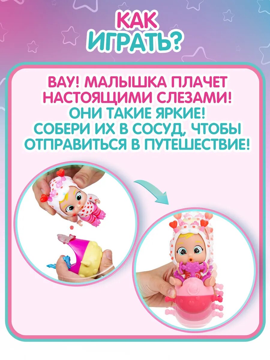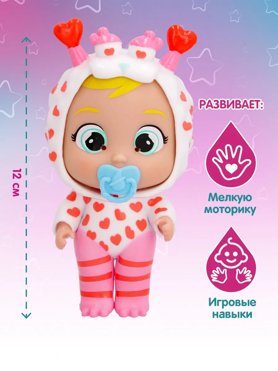 Любимые герои популярного мультсериала Край Бебис в мини-формате! Край Бебис - милые девочки, которые живут в мире Волшебных Слез. Кто эти очаровательные монстрики? Это же жители Планеты Слезок! Откройте для себя новых персонажей Край Бейбис. Малышка Момо готова познакомить вас со своей необыкновенной планетой на своем прыгающем скутере! У нее стильный силиконовый костюмчик, который можно снять, и 5 дополнительных аксессуаров для еще более увлекательной игры. Собирай друзей и вместе отправляйтесь в Звездное путешествие! Если нажать на ее голову, малышка начнет плакать необычными слезами в виде слайма! Успокой Момо и дай ей пустышку, она снова станет веселой! Милая команда монстриков всегда готова к игре на своих прыгающих скутерах! В коллекции 6 малышей, собери их всех! В наборе кукла высотой 13,5 см с подвижными ручками и ножками, транспортное средство и множество модных аксессуаров. Для того чтобы слезы вытекали из глаз при нажатии на голову, необходимо залить воду в специальный отсек на голове куклы, подождать 2 минуты и вынуть пустышку. Материалы: полимерные материалы. Товар сертифицирован и безопасен для детского использования. Упаковка: блистерная упаковка (11 х 8 х 18 см).