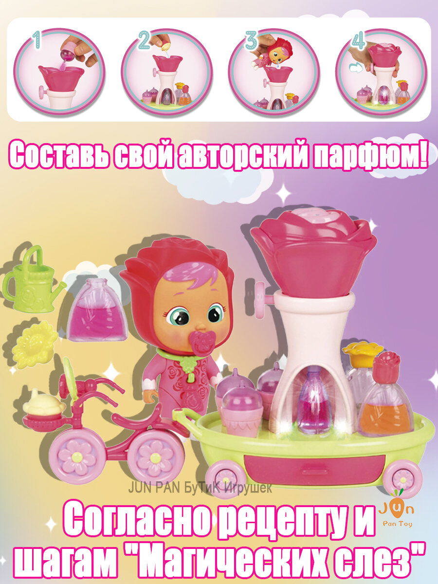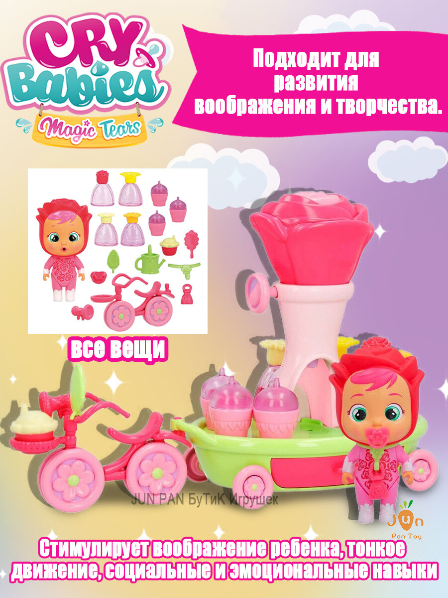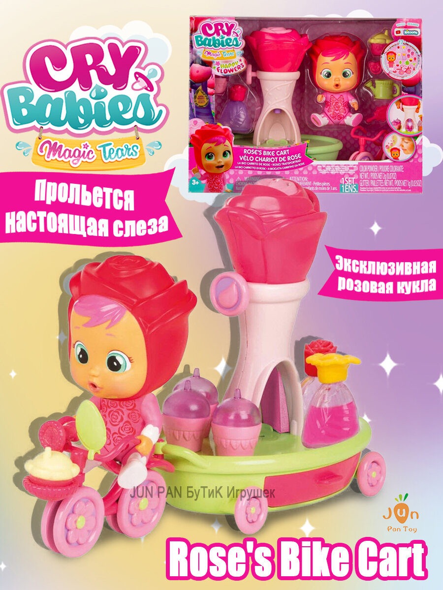 Купить Край бебис куклы Cry Babies Magic Tears Happy Flowers Rose Bike Cart / Розовый набор игрушек для велосипеда и коляски, 17+ аксессуаров и эксклюзивных кукол, Подходит для детей старше 3 лет с доставкой по всей России.