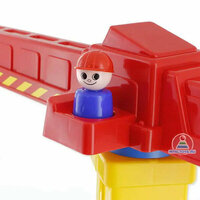 Кран башенный – отличный подарок для любознательного ребенка! • Уникальный дизайн и яркие цвета. • Размер крана: 32 x 39 x 18,5 мм. • Стрела поворачивается, трос наматывается на барабан с трещеткой, человечек вытаскивается. • Развивает мелкую моторику рук, сенсорное и визуальное восприятие, координацию движений, воображение. • Состоит из пластмассы. • Соответствует требованиям безопасности и стандартам качества продукции. • Для детей от 3-х лет.