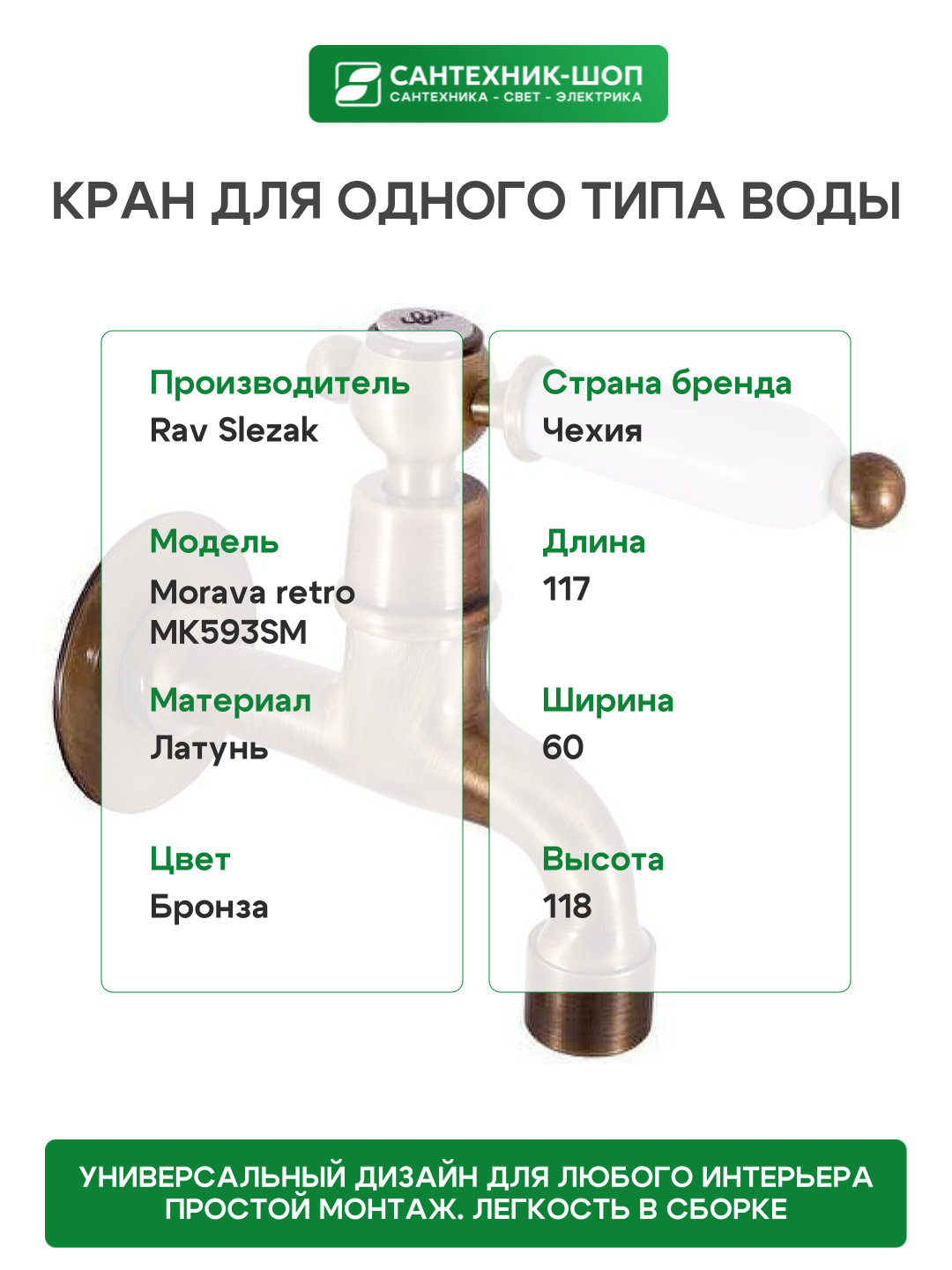 Купить Кран для холодной воды Rav Slezak Morava retro MK593SM Бронза латунь на стену Чехия с доставкой по всей России. Кран для холодной воды Rav Slezak Morava retro MK593SM Бронза латунь на стену Чехия: сравнение цен, характеристики, фото, актуальное наличие и цены.