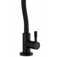 Кран для питьевой воды с гибким изливом– это незаменимый элемент кухонного оборудования. Он позволяет обеспечить чистую и безопасную воду для приготовления пищи и напитков. Наш кран на одну воду с гибким гусаком и подключением фильтра тонкой очистки – это идеальное решение для тех, кто ценит комфорт и качество. Габаритные размеры крана для фильтра питьевой воды: высота 23 см, вынос излива 12 см, высота от носика до столешницы 13,5 см. Корпус черный из нержавеющей стали обеспечивает надежность и долговечность использования. Гибкий черный излив позвояет удобно набрать чистую воду в чайник или кастрюлю. Хозяйки по достоинсту оценят такой кран для питьевой воды. Крепление на резьбе и гайка обеспечивают надежное крепление к водопроводной системе.