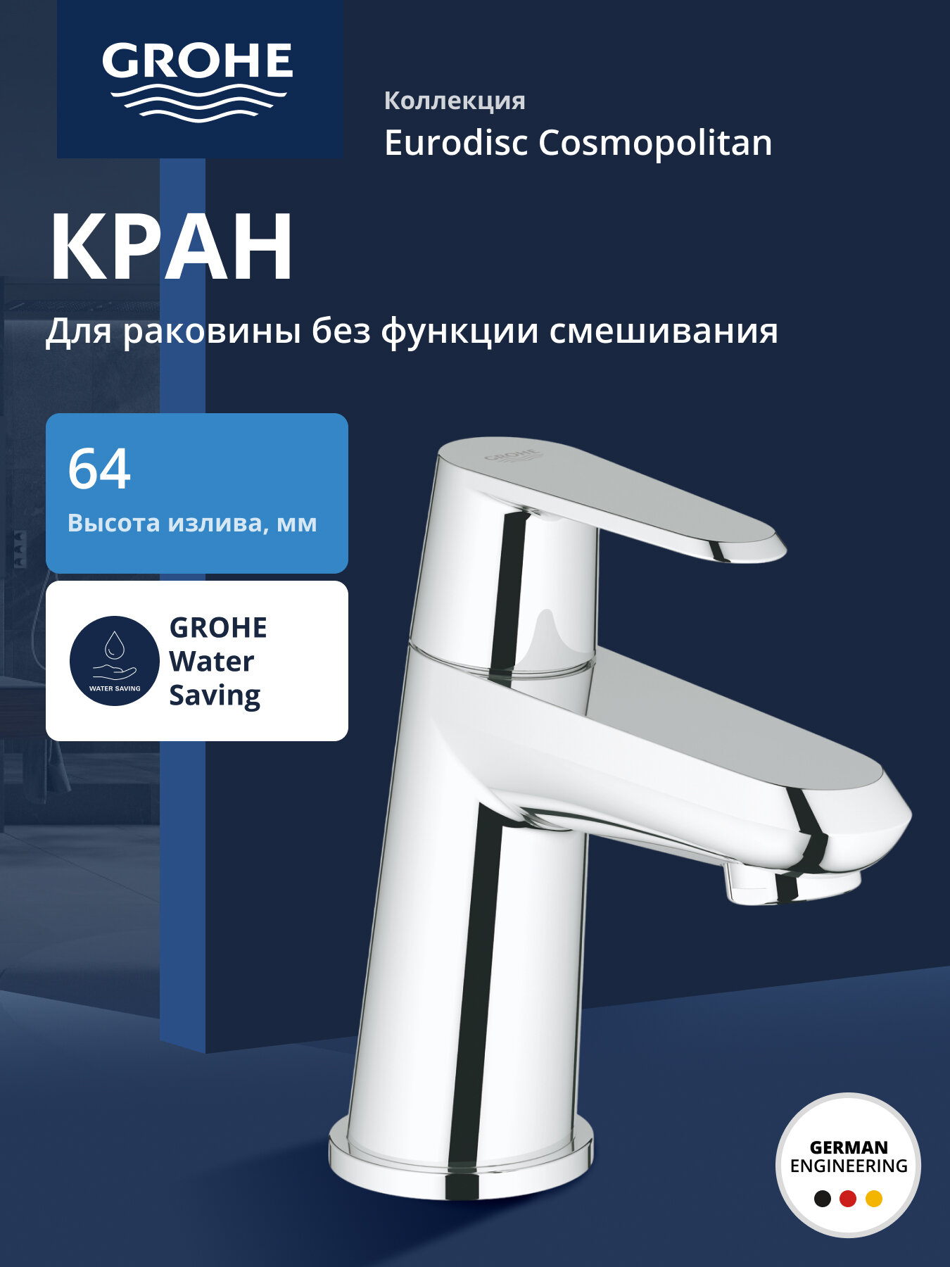 Кран для раковины GROHE Eurodisc Cosmopolitan, без функции смешивания, хром (23051002): сравнение цен, характеристики, фото, актуальное наличие и цены.