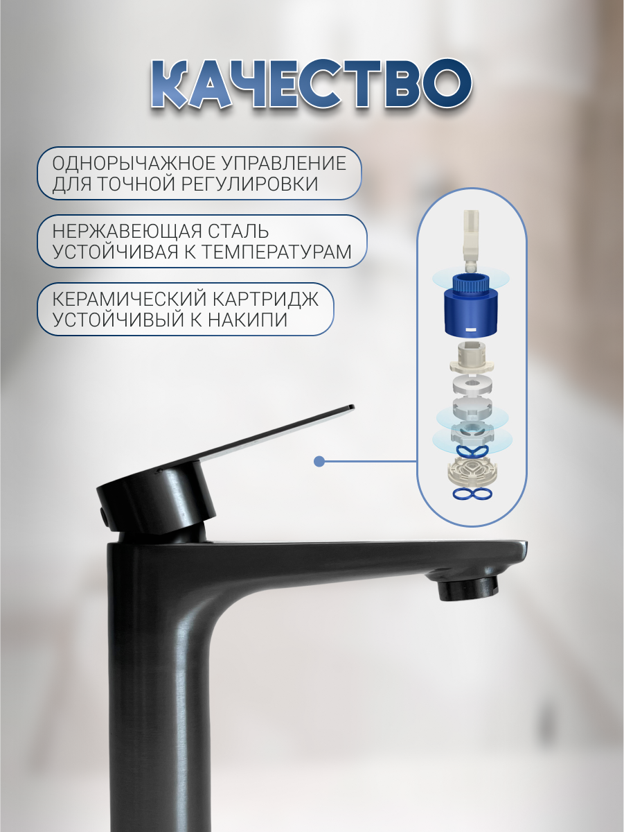 | Комплектация | смеситель для раковины, гибкая подводка, крепежные элементы |