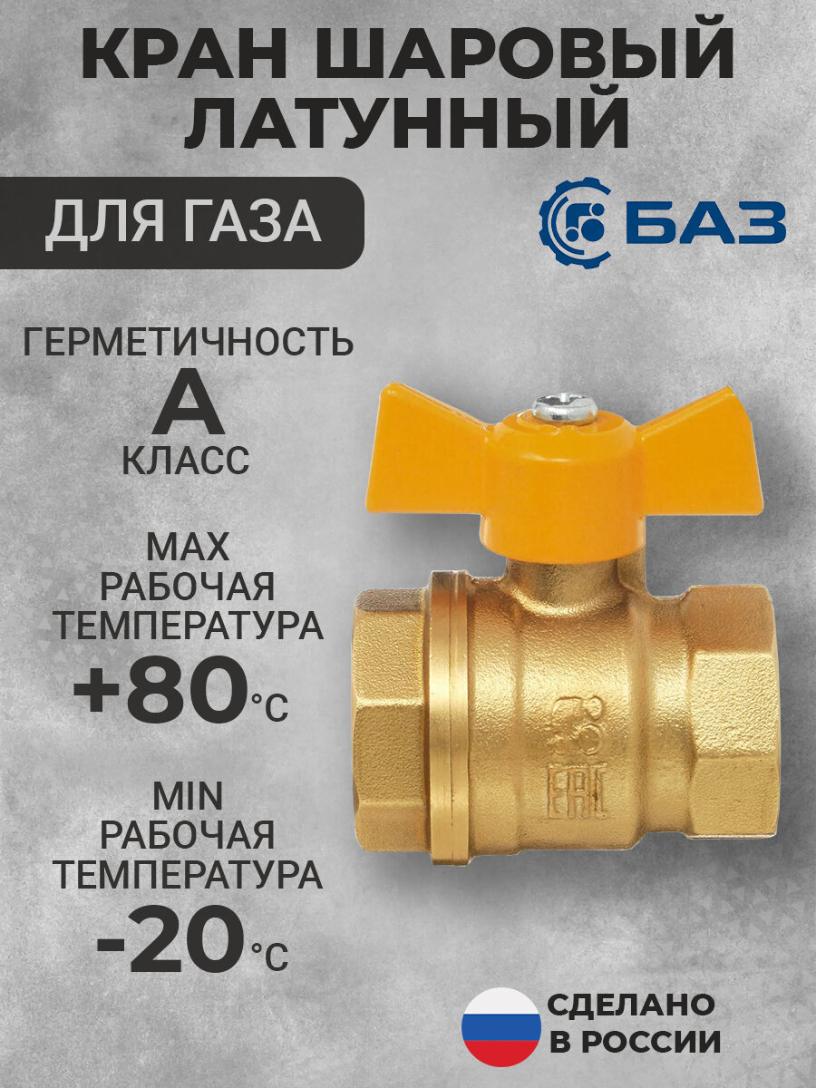 Купить Кран латунный шаровый для газа Ду25 (1″) Бабочка ВН/ВН БАЗ с доставкой по всей России.