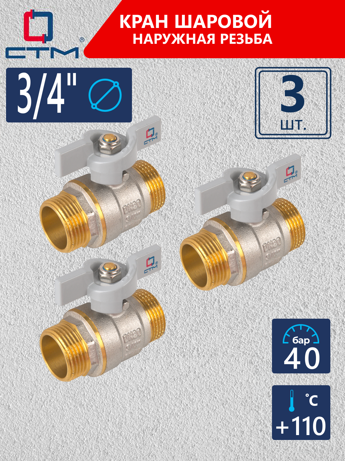 Купить Кран шаровый для воды 3/4″, наружная резьба СТМ стандарт (3 шт) с доставкой по всей России. Кран шаровый для воды 3/4″, наружная резьба СТМ стандарт (3 шт): сравнение цен, характеристики, фото, актуальное наличие и цены.