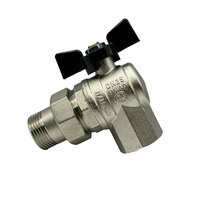 Купить Кран шаровый угловой Bugatti Oregon 05940 муфтовый (ВР/НР), латунь, с накидной гайкой для бытовой техники серебристый Ду 25 (1″) муфтовый (ВР/НР) с доставкой по всей России.