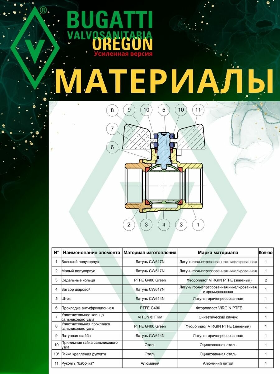 Кран шаровой Bugatti «Oregon» 302, ВР-ВР (бабочка) 1″, 1 шт.: сравнение цен, характеристики, фото, актуальное наличие и цены.