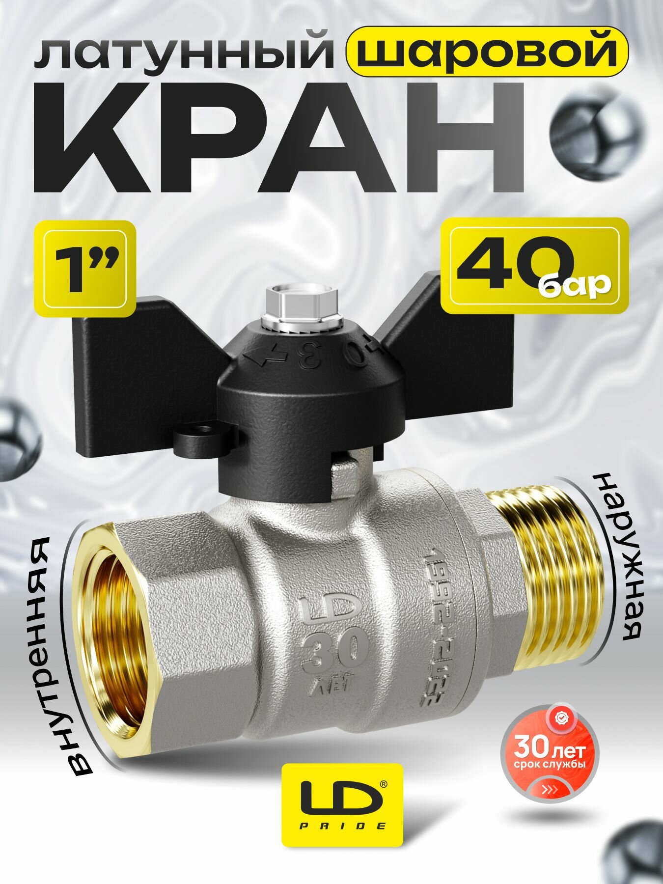 Кран шаровой латунный DN 25 мм (1″) PN 40 ВР-НР LD Pride, ручка бабочка черная: сравнение цен, характеристики, фото, актуальное наличие и цены.
