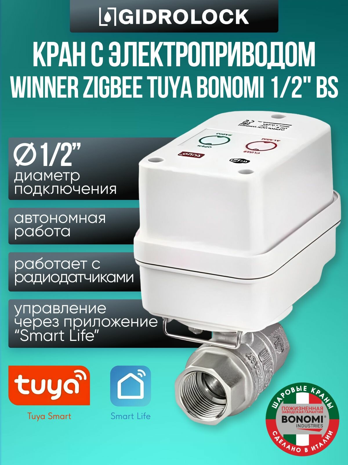 Кран шаровой с электроприводом Gidrolock Winner Zigbee Tuya Bonomi 1/2″ BS: сравнение цен, характеристики, фото, актуальное наличие и цены.