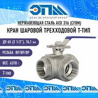 Кран трехходовой T-тип Ду 65 (2 1/2″) AISI 316 нержавеющий Вр/Вр/Вр (резьбовой, шаровой): сравнение цен, характеристики, фото, актуальное наличие и цены.