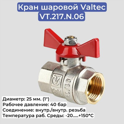 (VT.217. N) Полнопроходной ремонтопригодный шаровой кран с увеличенным ресурсом. Корпус – латунный, никелированный. Оснащен ручкой типа «бабочка» с утолщенной стенкой из алюминиевого сплава и эпоксидной покраской. Резьба присоединений – внутренняя/внутренняя. Технические характеристики: Форма: прямой Полнопроходной: да Газовый: нет Тип ручки: бабочка Тип арматуры: запорная Материал: никелированная латунь Тип присоединения: резьбовой Тип резьбы: 1F-1F Номинальное давление (PN): 40 бар Max температура применения: 150 °С Область применения: горячее и холодное водоснабжение, отопление Для подсоединения стиральной машины: нет Для подсоединения манометра: нет С фильтром: нет С креплением: нет С термометром: нет С носиком: нет Спускное устройство: нет Цвет флажка/бабочки: красный Резьба присоединения: внутренняя - внутренняя резьба Информация об упаковке: Единица товара: Штука Вес, кг: 0.38 Длина, мм: 70 Ширина, мм: 57 Высота, мм: 43 (VT.217. N) Полнопроходной ремонтопригодный шаровой кран с увеличенным ресурсом. Корпус – латунный, никелированный. Оснащен ручкой типа «бабочка» с утолщенной стенкой из алюминиевого сплава и эпоксидной покраской. Резьба присоединений – внутренняя/внутренняя
