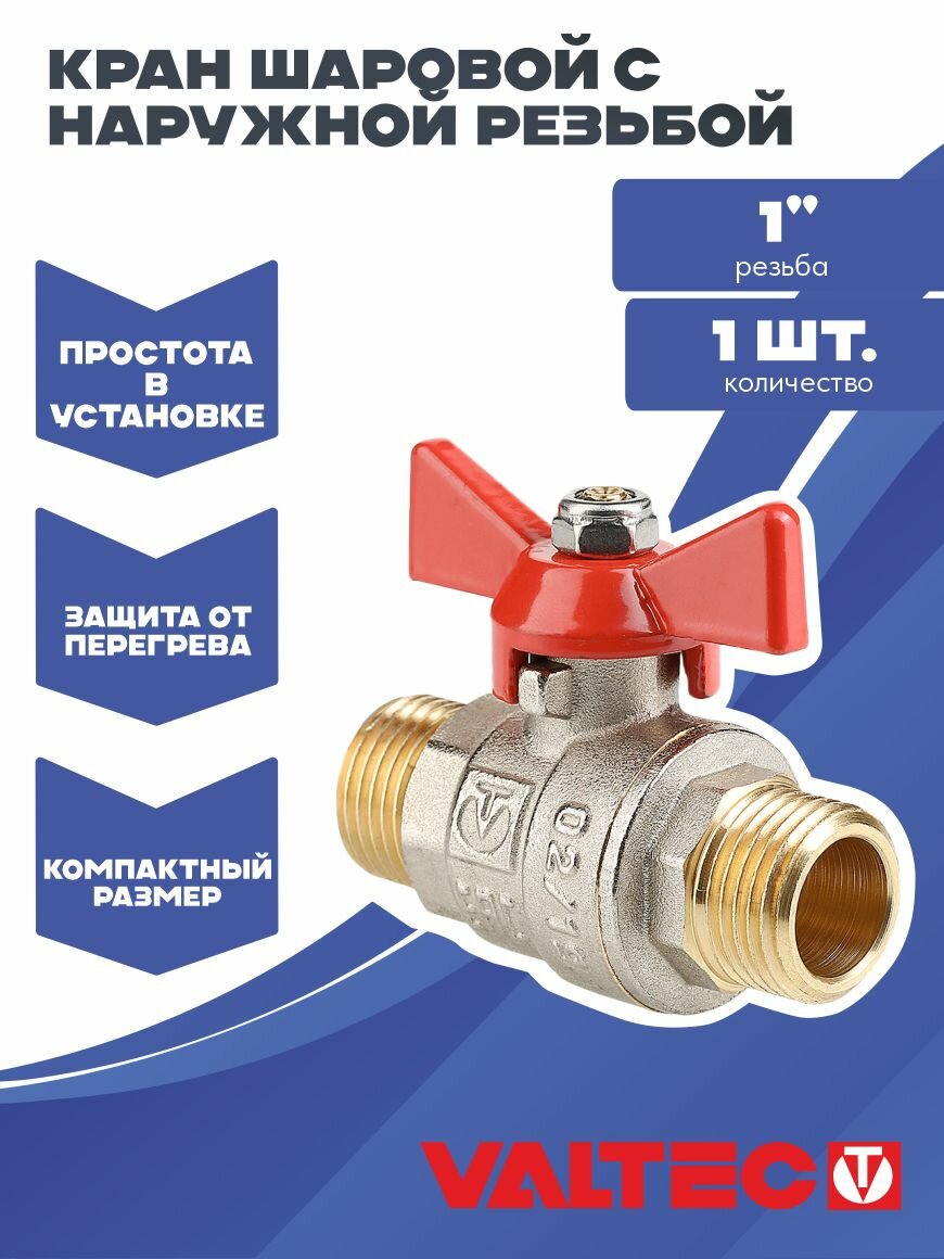 Купить Кран шаровой 1″ для воды Valtec, латунный наружной резьбой для систем отопления и водоснабжения BASE VT.219 с доставкой по всей России.