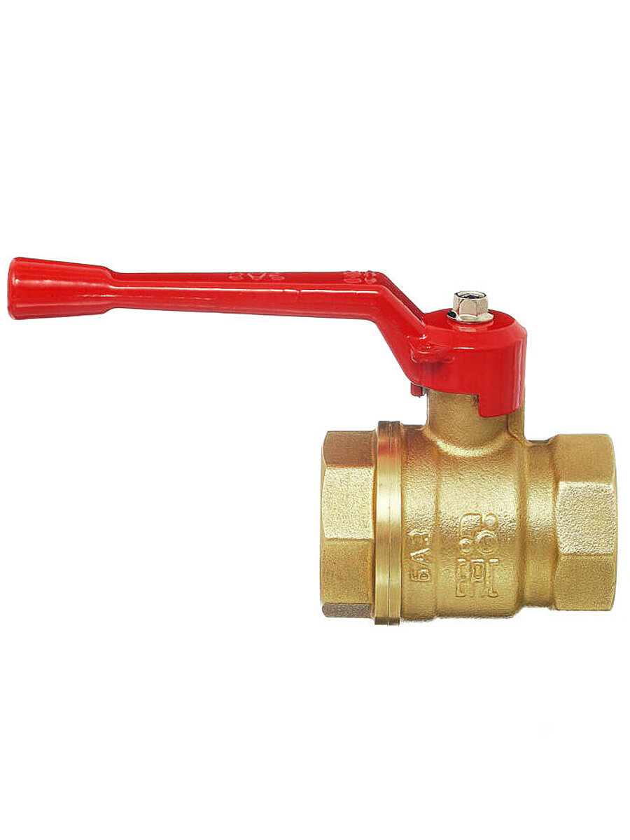 Шаровой кран БАЗ 11Б27П1, латунь, 1 1/4", Ду 32, PTFE, золотистый/красный, ВР/НР