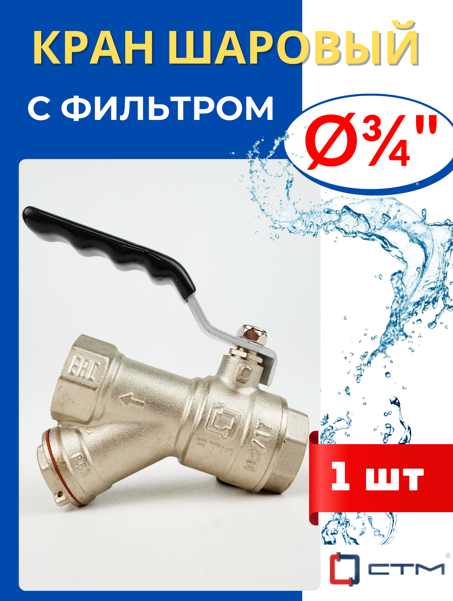 Кран шаровый 3/4 латунный с фильтром, внутренняя резьба, ручка-рычаг профи (СТМ) 1шт.: сравнение цен, характеристики, фото, актуальное наличие и цены.