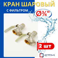 Кран шаровый 3/4 латунный с фильтром, внутренняя резьба, ручка-рычаг (СТМ) 2шт.: сравнение цен, характеристики, фото, актуальное наличие и цены.