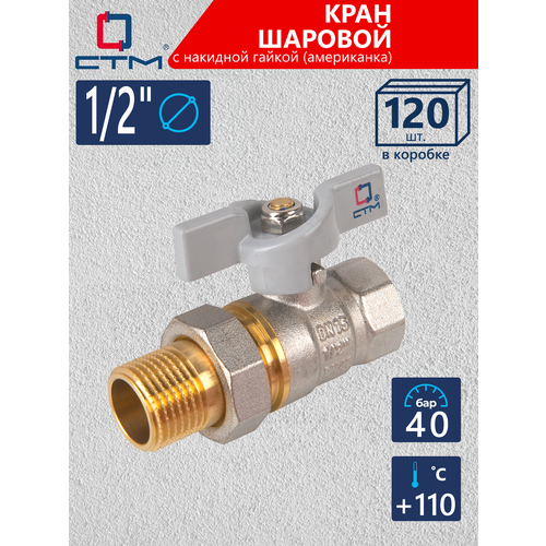 Купить Кран шаровый с накидной гайкой 1/2″ для воды СTM стандарт бабочка (120 шт) с доставкой по всей России. Кран шаровый с накидной гайкой 1/2″ для воды СTM стандарт бабочка (120 шт): сравнение цен, характеристики, фото, актуальное наличие и цены.