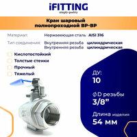 Кран шаровый 3/8 из нержавейки востребованы в трубопроводах, к которым применяются высокие требования по эстетичности, устойчивости к коррозии. Шаровые краны (шаровый кран 3/8 дюйма) устанавливают в бытовых водопроводных и газовых сетях, на предприятиях сферы фармакологии, пищевой, нефтегазовой промышленности, в коммуникациях с агрессивными жидкостями, на объектах, где требуется повышенная герметичность и антикоррозионность. Кран шаровой (кран 10 мм шаровый) тяжелый, толстые стенки, усиленный корпус, вес больше по сравнению с аналогичными легкими кранами. Конструкция: полнопроходной, двусоставной Тип присоединения шаровый кран 3/8: муфтовый Тип управления кран шаровой 3/8: ручное Шаровой кран размеры: 1/4", 3/8", 1/2", 3/4", 1", 1-1/4", 1-1/2", 2", 2-1/2", 3", 4" Максимальное давление кран 3/8 шаровый: 1/4" - 1" - 63 атм 1-1/4" - 2" - 40 атм. Рабочая температура: от -32° до +180° Максимальная температура: от -50° до +230° Класс герметичности: А
