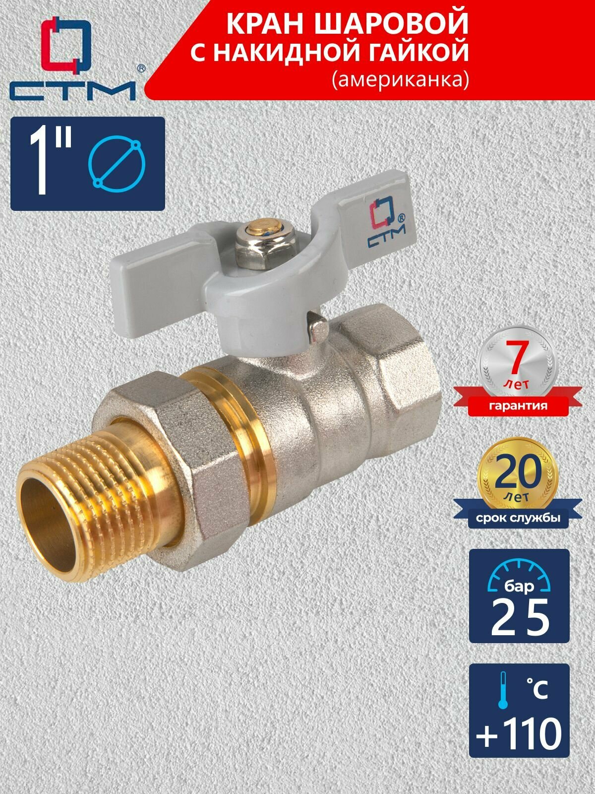 Купить Кран шаровый с накидной гайкой 1″ для воды СTM стандарт бабочка с доставкой по всей России. Кран шаровый с накидной гайкой 1″ для воды СTM стандарт бабочка: сравнение цен, характеристики, фото, актуальное наличие и цены.