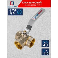 Купить Кран трехходовой для воды СTM стандарт 1/2″, тип T ручка-рычаг с доставкой по всей России.
