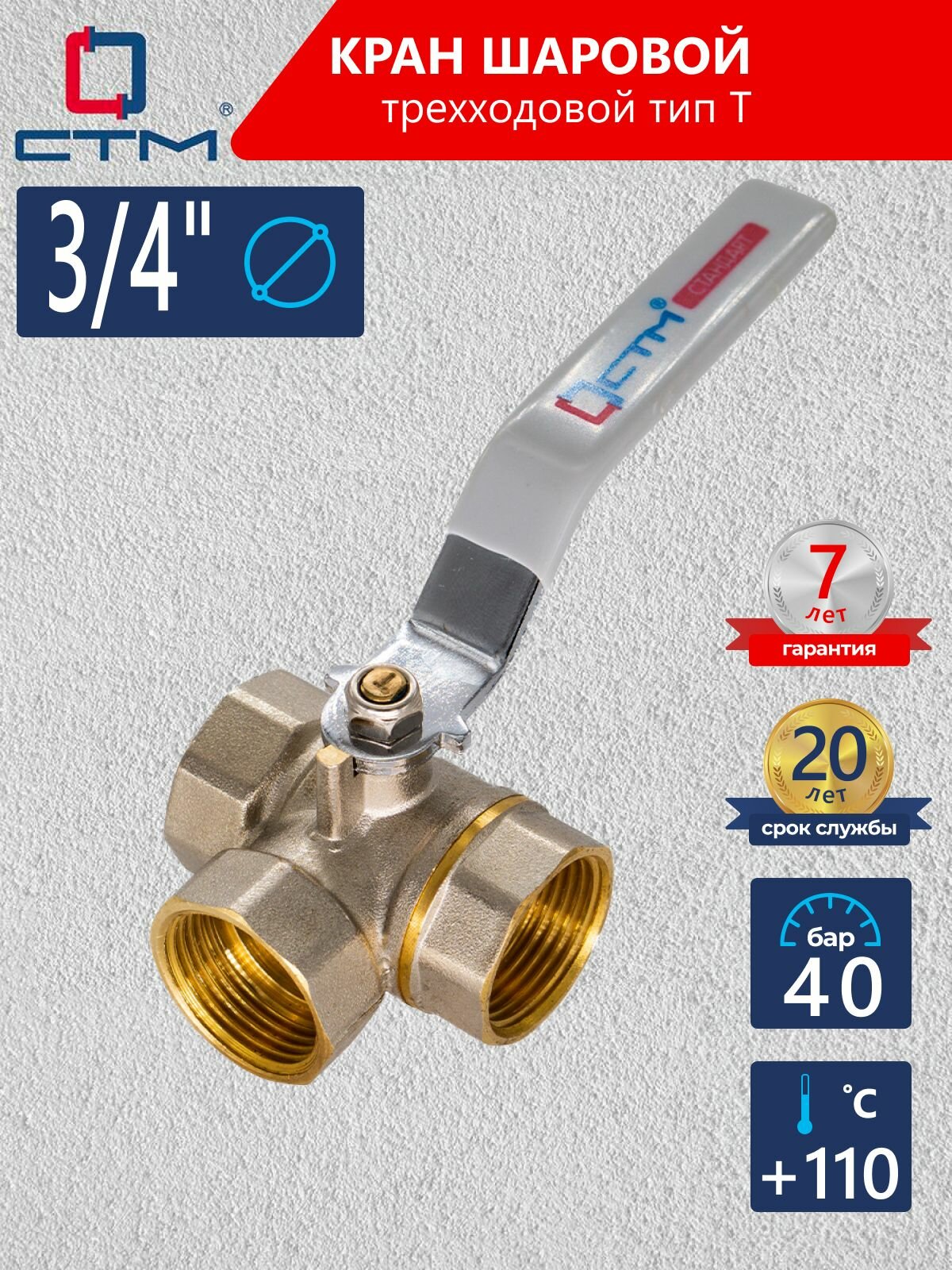 Кран трехходовой для воды СTM стандарт 3/4″, тип T рычаг: сравнение цен, характеристики, фото, актуальное наличие и цены.